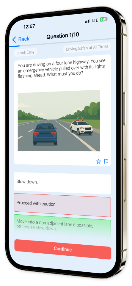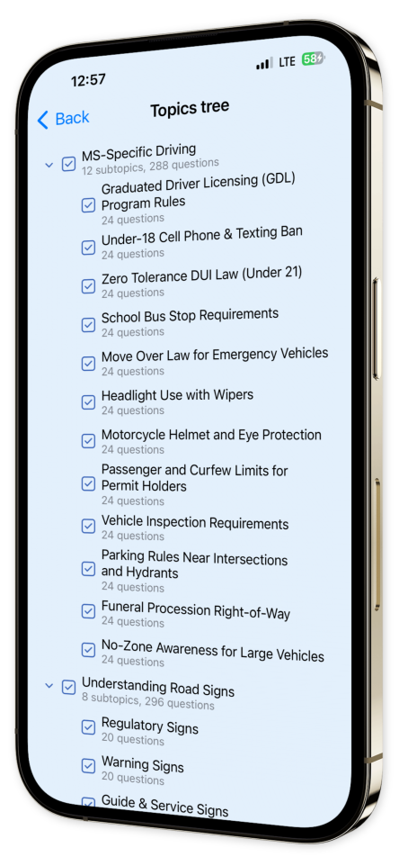Prepare to conquer your driving journey with Mississippi DMV Practice Test! Our app is meticulously designed to immerse you in a realistic testing environment, ensuring you're fully equipped for your DMV examination. With our comprehensive question bank, you'll master every aspect of road rules and driving safety required for success.